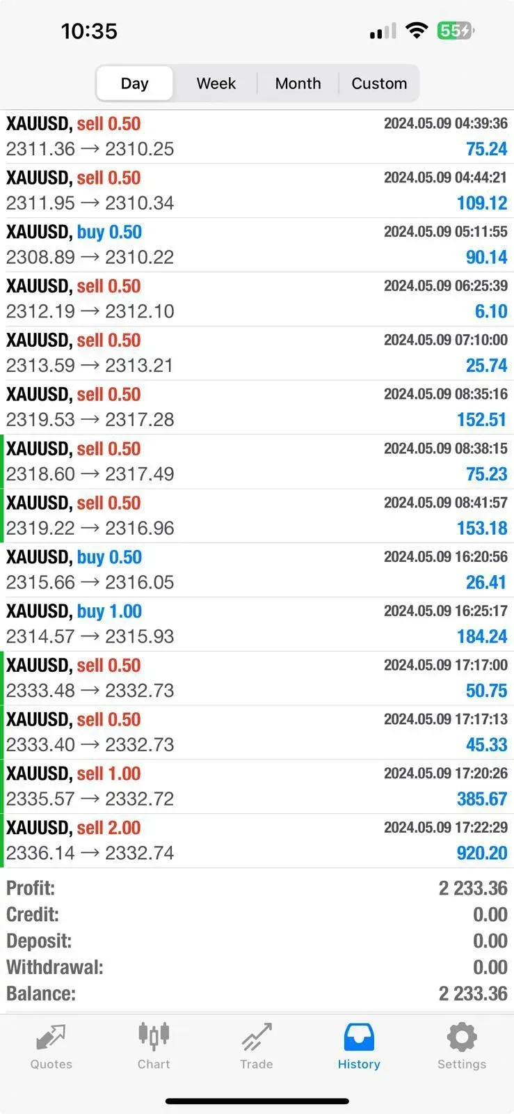 After several years of trial-and-error, testing everything and figuring things out the hard way - without anyone guiding me - I've finally reached a point where I consistently increase my account balance by up to 10% daily, with a trading success rate of up to 95%.